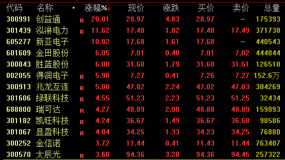 铜缆连接、CPO概念等AI产业链股集体走高,截至收盘,铜缆连接概念方面,创益通、新亚电子涨停,泓淋电力涨近12%。CPO概念方面,联特科技涨超17%,盘中一度涨停;华天科技、中京电子涨停,源杰科技、中际旭创涨近7%。