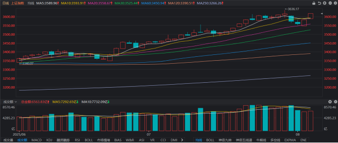 财联社8月5日讯 今日(8月5日),上证指数再度发力,报收3617.60点,收盘点位创2022年1月4日以来近3年半新高,年内第4个交易日站上3600点。