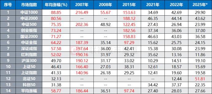 注:上证指数收盘点位超3600点的各年份指数表现情况