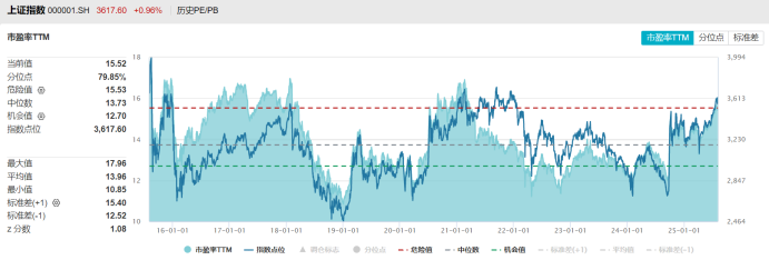 随着收盘点位接连新高,沪指近期估值水平也逐步提升。截至8月5日数据,其市盈率、市净率分别达15.52倍、1.41倍,股息率2.41%,较此前于4月7日录得的年内最高数值(3.22%)下降近0.81个百分点。
