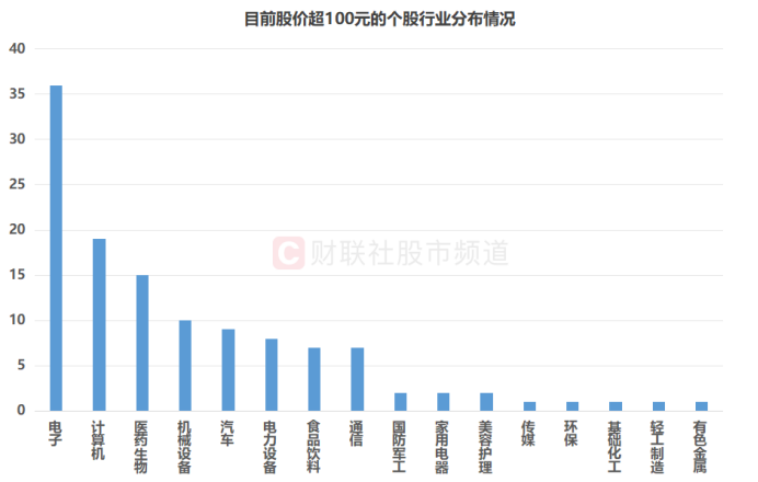 注:目前股价超100元的个股行业分布情况(截至8月15日数据)