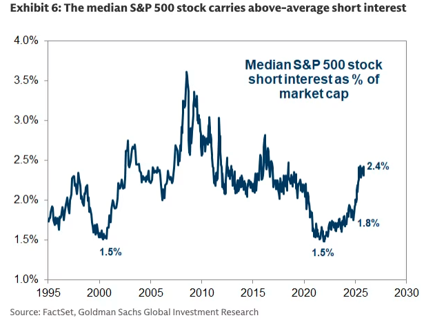 高盛最新发布的对冲基金仓位报告显示,“聪明钱”目前尚未准备好大举做空AI巨头。但部分机构已开始瞄准该领域中实力相对较弱的公司。美股空头仓位处于近年来高位。