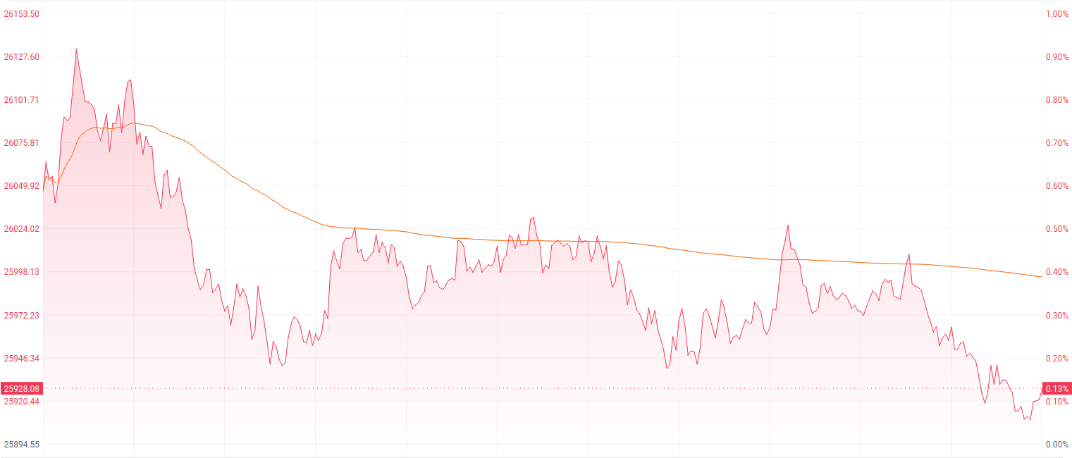 今日港股市场延续升势,三大指数集体收涨。截至收盘,恒生指数涨0.13%,报25928.08点;恒生科技指数涨0.11%,报5618.36点;国企指数涨0.04%,报9162.37点。
