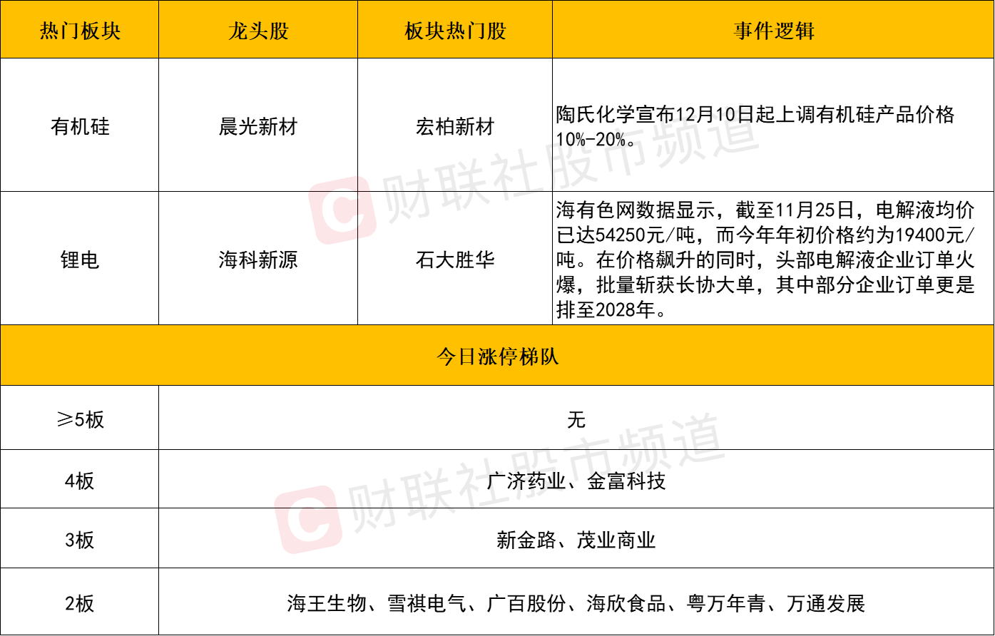 有机硅概念股震荡走强,晨光新材、宏柏新材涨停,金银河、远翔新材、晨化股份、东岳硅材等个股涨幅居前。