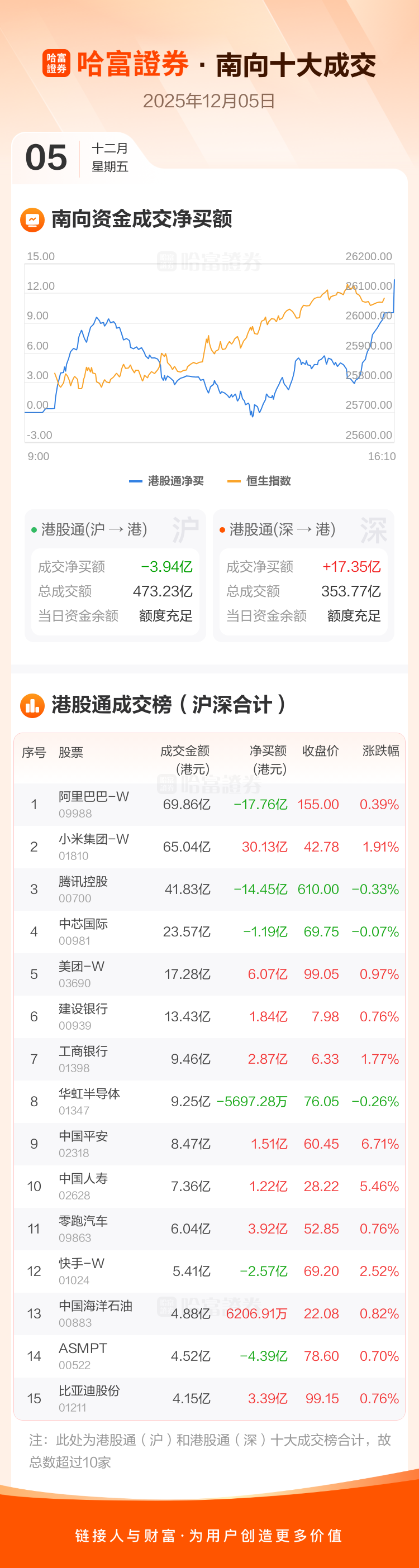 12月5日,恒生指数微涨0.58%,南向资金净买入港股。小米集团-W、美团-W等股票表现亮眼。本文基于AI生产,不构成投资建议。