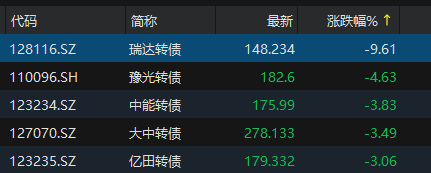 12月9日,中证转债指数午盘下跌0.36%,报482.17点。上涨方面,福蓉转债、沪工转债、万孚转债、微导转债涨幅居前,分别涨8.33%、7.29%、4.31%、4.22%。下跌方面,瑞达转债、豫光转债、中能转债跌幅居前,分别跌9.61%、4.63%、3.83%。