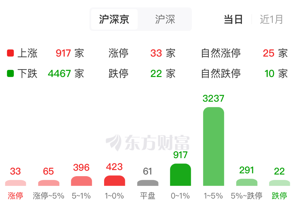 A股三大股指早盘单边下行,截至午间收盘,沪指跌1.22%,深成指跌1.88%,创业板指跌2.35%。两市半天成交1.12万亿元,较昨日同期缩量606亿元;全市场仅917股飘红,仍有33股涨停。