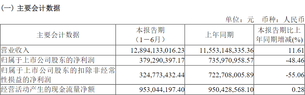 作为三元正极龙头,今年上半年容百科技业绩表现欠佳。根据半年报,容百科技虽然上半年营业收入为128.94亿元,较去年同期增加11.61%,但归属于上市公司股东的净利润为3.79亿元,较去年同期减少48.46%。