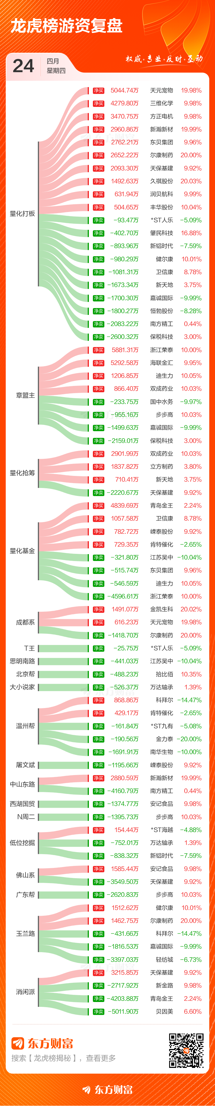 4月24日,市场活跃,共有67只个股荣登龙虎榜,总上榜成交额高达101.30亿元。在这些上榜个股中,净买入额最高的明星股是海联金汇,其净买入金额达到了惊人的2.01亿元,成为当日市场的焦点。