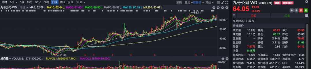 今年一季度末,阿布达比投资局首次进入九号公司前十大流通股东名单,当时持有数约1000万股,成为第五大流通股东。今年二季度,阿布达比投资局继续加仓200多万股,截至二季度末持有1218.3万股,为第四大流通股东。今年以来,九号公司股价稳步走高,年内涨幅34%。