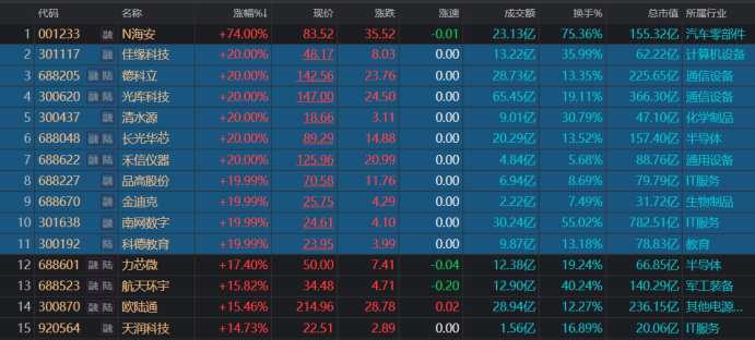 今日多只创业板、科创板股表现活跃!品高股份成功晋级“20cm”3连板