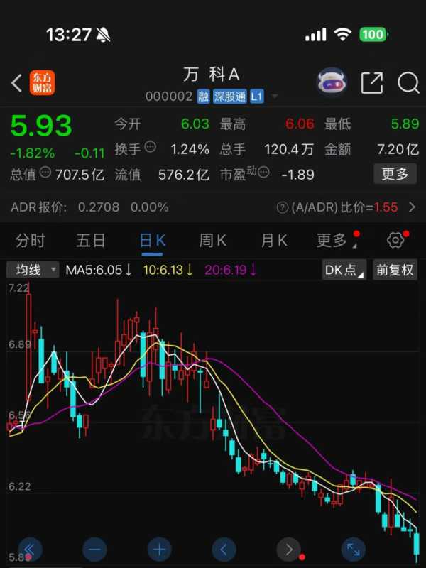 债券的大幅下挫也蔓延到了股市。今日万科A股价一度下探至5.89元/股,创下2015年10月以来的新低。
