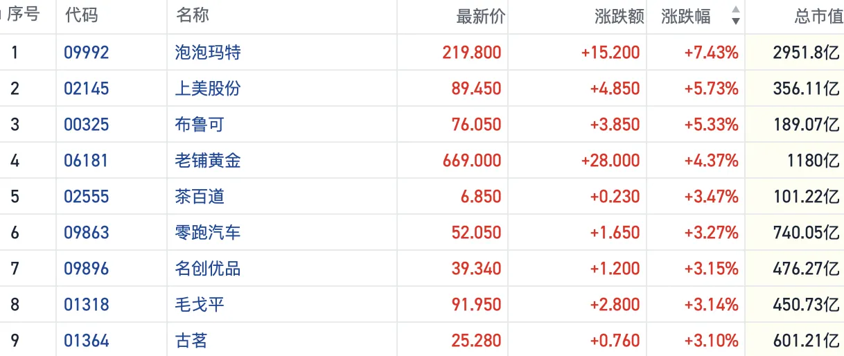 港股新消费概念走强:泡泡玛特大涨超7%,政策端发力提振