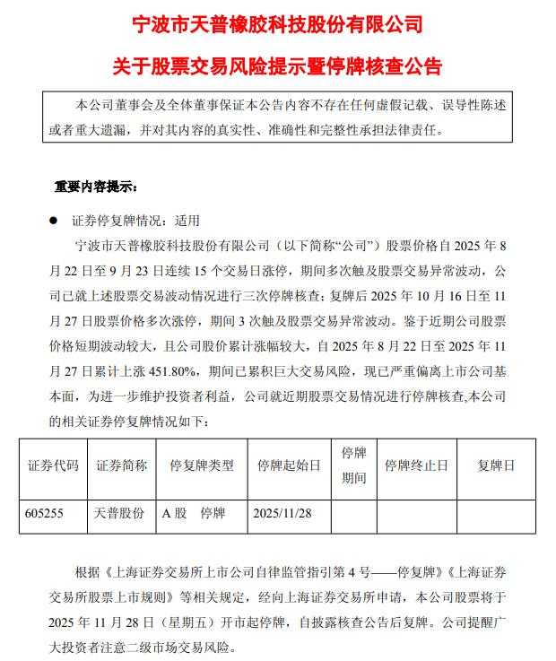 天普股份连续涨停后停牌,投资者需警惕风险