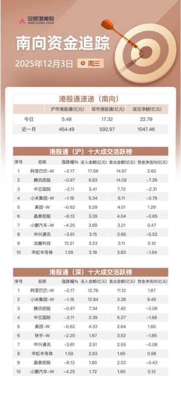 南向资金今日成交创近10个月新低,个股表现分化
