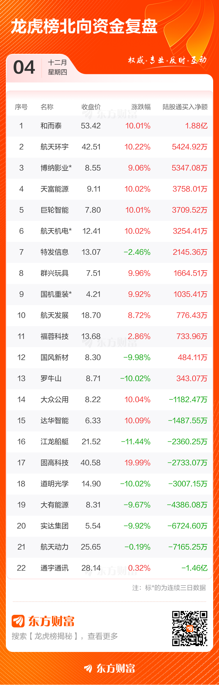12月4日共有60只个股上榜龙虎榜,总上榜成交额182.76亿元。上榜个股中净买入额最高的是和而泰,金额为4.87亿元。