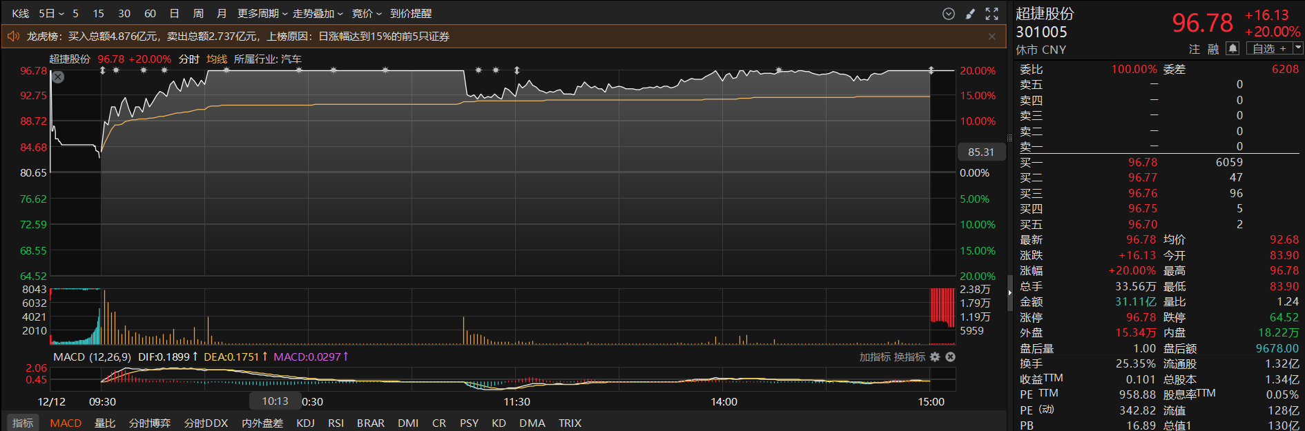 二级市场上,超捷股份周五收盘20CM涨停。