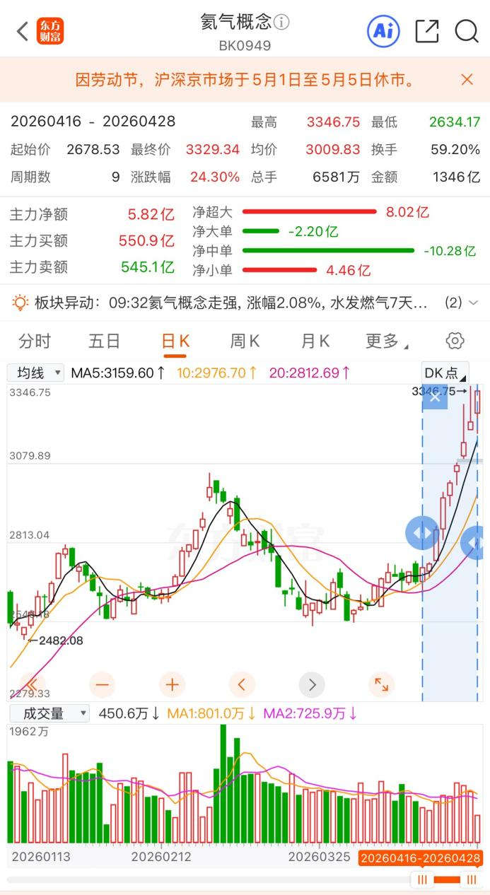 日线9连阳!氦气概念早盘领涨 龙头股月内翻倍