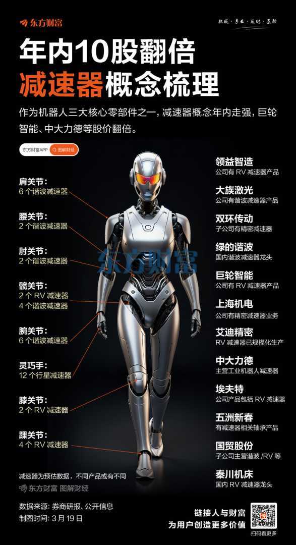 3月19日,机器人赛道显著增强,减速器方向领涨。今年以来,减速器概念持续升温,累计涨幅已达58.69%。随着工业机器人和人形机器人的快速发展,减速器的市场需求将持续增长。中信建投指出,2025年人形机器人量产元年,需求将倍数级增长。