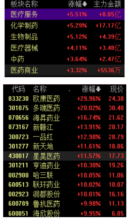 4月1日盘中,医药股整体大涨,创新药方向领涨。截至发稿,欧康医药、多瑞医药、亨迪药业、哈三联、联环药业等10余股涨停,海昇药业、新赣江、新天地等多股涨超10%。