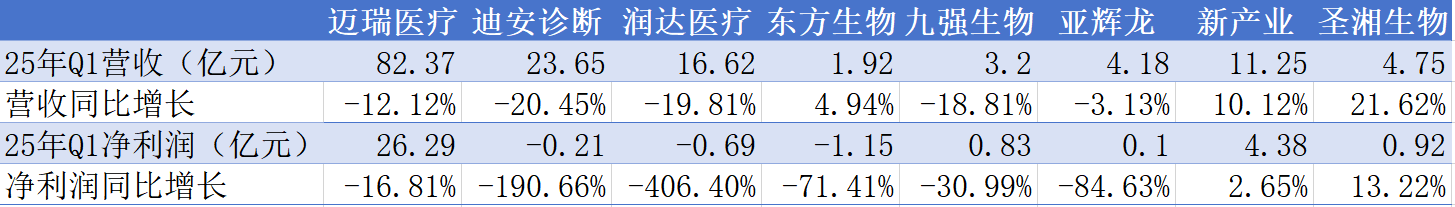 医疗器械企业2025年一季报陆续出炉,展现行业最新动态。