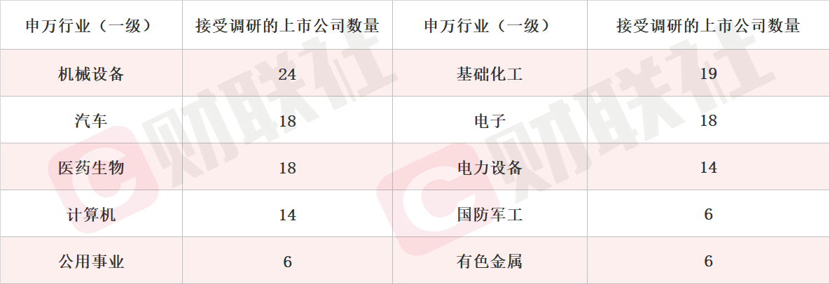 财联社7月20日讯 据Choice数据统计,截至今日,沪深两市本周共180家上市公司接受机构调研。按行业划分,机械设备、基础化工和汽车行业接受机构调研频度最高。此外,公用事业、电力设备等行业关注度有所提升。