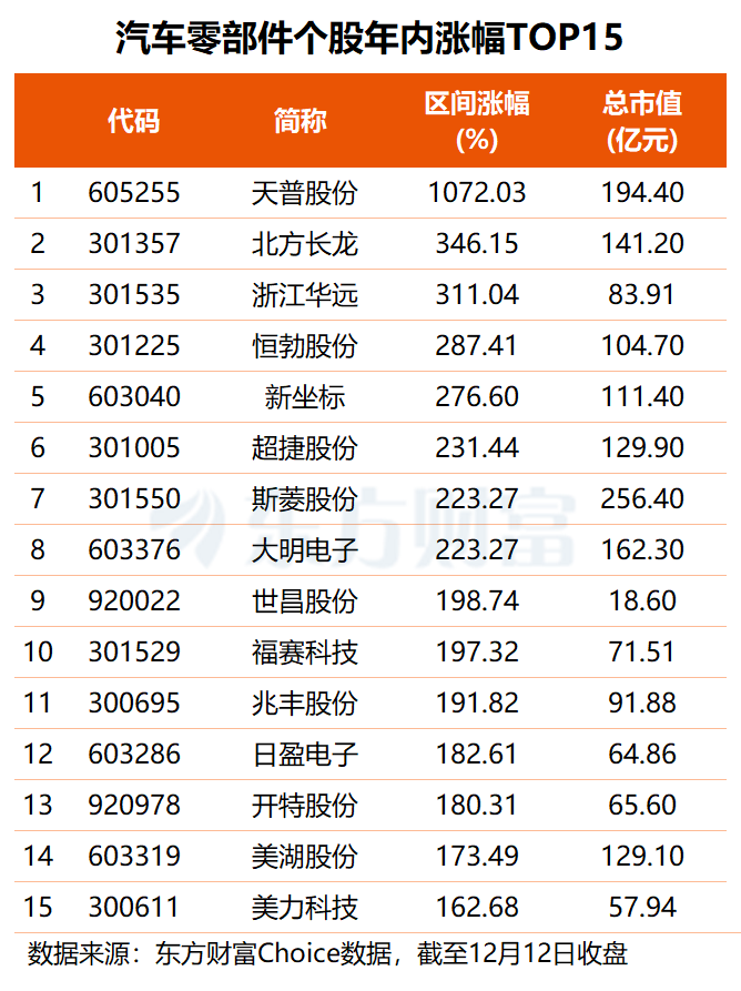 东方财富行业板块显示,目前A股市场共有逾230股涉及汽车零部件业务,合计总市值约2.43万亿元,潍柴动力、拓普集团总市值位居前两位。
