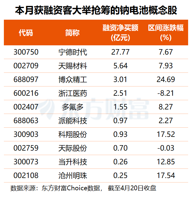 “宁王”新品发布在即 钠电池概念反复活跃 多股获杠杆资金加仓(名单)