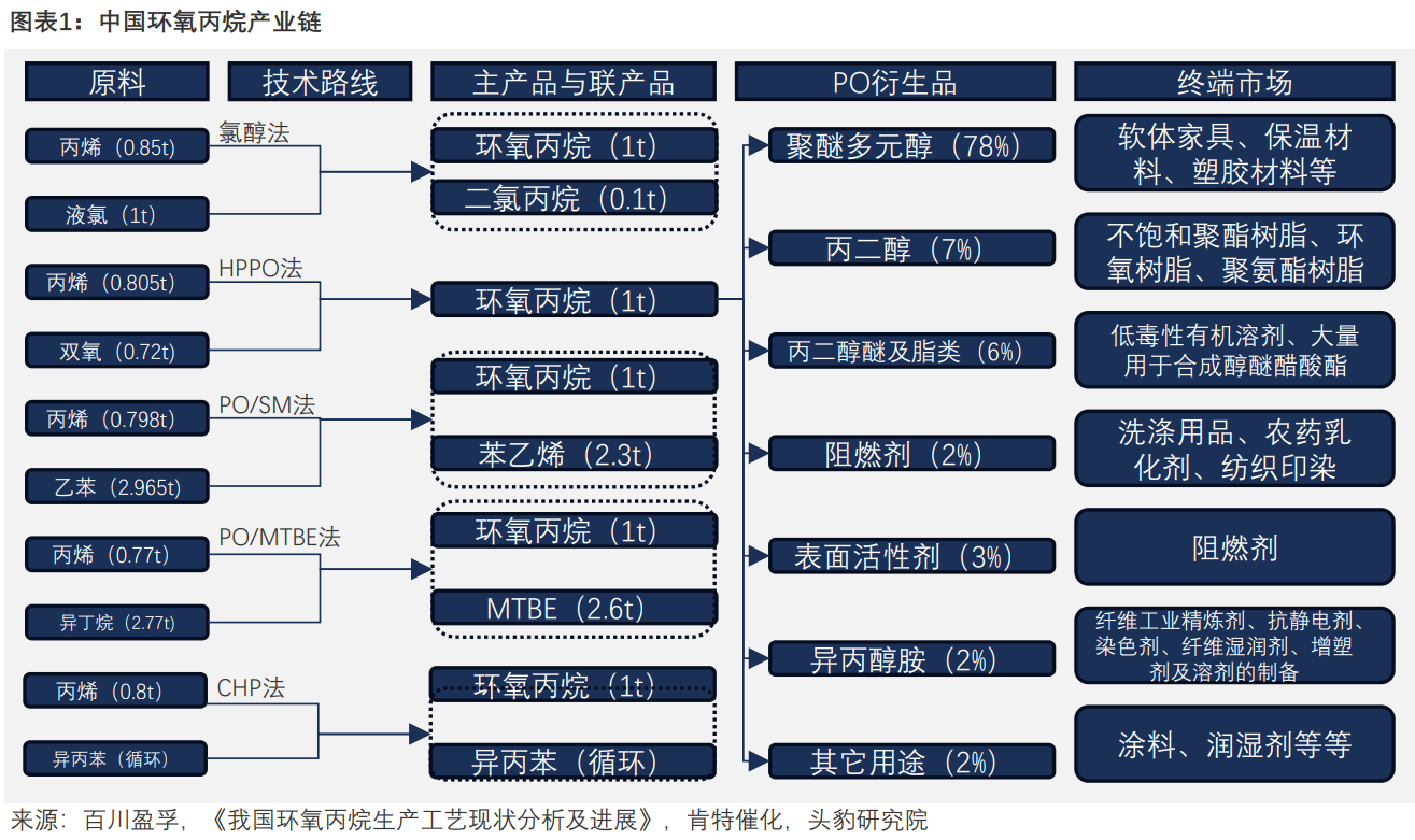 公开资料显示,环氧丙烷是重要的基础有机化工原料,用于生产聚醚多元醇、丙二醇和各类非离子表面活性剂等,其产业链覆盖从丙烯、氯气、过氧化氢等多样化原料到下游聚氨酯、溶剂及精细化学品的完整体系,在国内化工产业链中具有承上启下的关键地位。