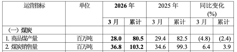 消息面上,4月16日,煤炭股龙头中国神华发布公告,2026年3月份主要运营数据显示,公司商品煤产量为2800万吨,较2025年同期下