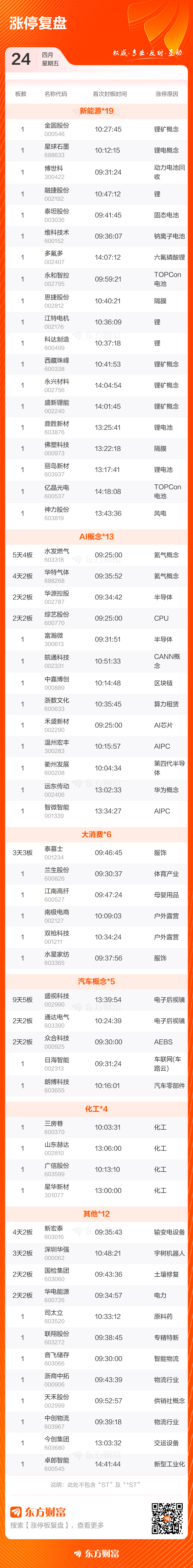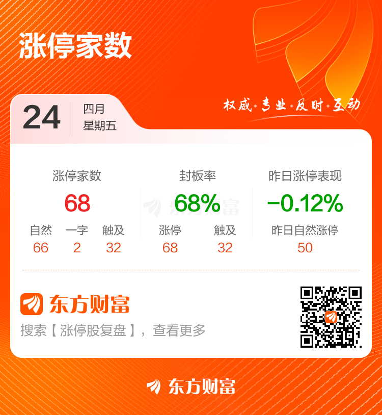 4月24日涨停复盘:68只股涨停 水发燃气5天4板