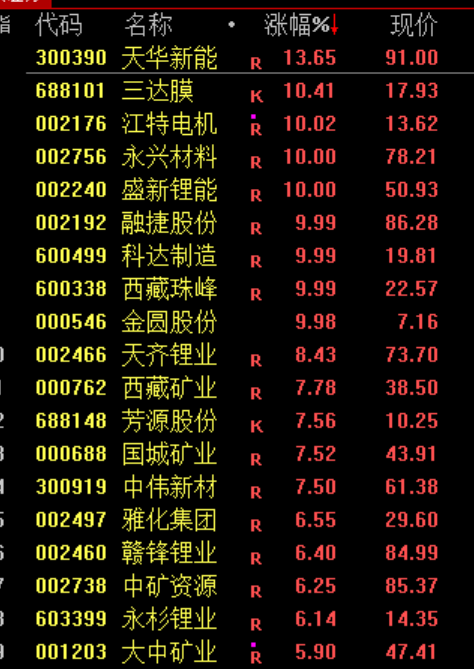 锂电产业链逆市走强,永兴材料、盛新锂能、融捷股份等多股涨停。