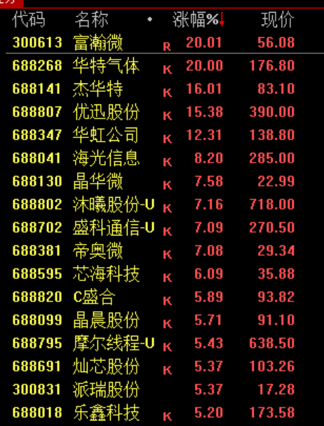 半导体芯片股拉升,富瀚微、深圳华强等涨停,华虹公司涨超10%。
