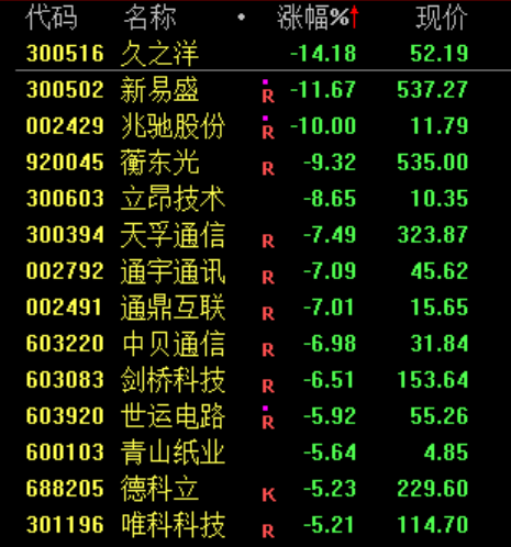 而今天市场最大的关注点,就是光通信概念的大牛股——新易盛。其股价暴跌超过了10%,导致整个板块承压。