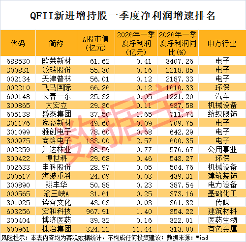 从业绩数据来看,今年一季度期间QFII新进增持股中,135股今年一季度净利润同比增长20%以上(含扭亏为盈)。41股净利润扭亏为盈,如汽轮科技、华自科技、博世科、马钢股份、欧莱新材等。以汽轮科技为例,公司一季度实现净利润0.85亿元,同比扭亏为盈,报告期内,公司完成换股吸收合并杭州汽轮动力集团股份有限公司。