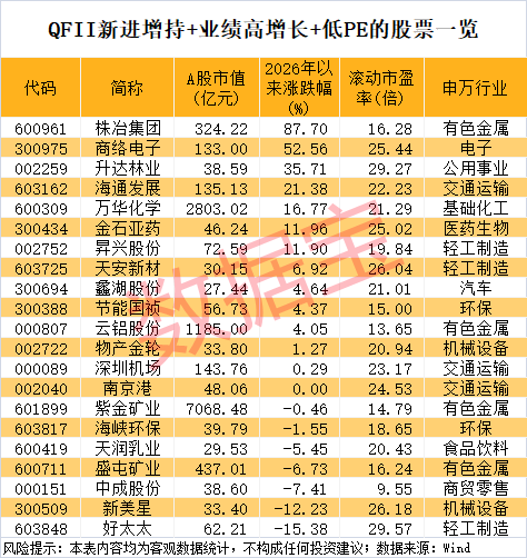 外资一季度潜伏加仓股揭晓 爆买6大龙头!业绩高增长+低PE股仅21只