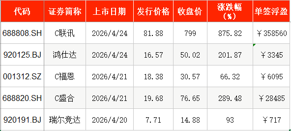值得一提的是,登陆科创板的联讯仪器(688808),上市首日单签浮盈达到35.85万元,创下A股首日单签收盘浮盈的次高,仅次于2025年上市的沐曦股份(688802)。