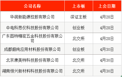 五一假期前的最后4个交易日,A股有2只新股安排申购。