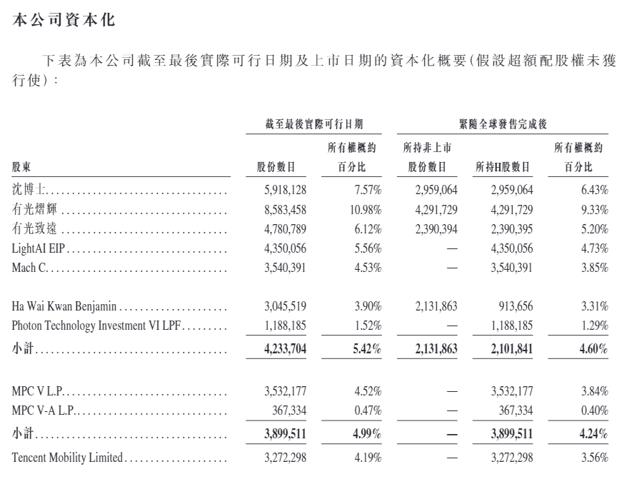 因此,沈亦晨在全球发售完成后将合共控制公司29.55%的投票权,而沈亦晨、LightAI EIP、Mach C、有光致远、有光烁然及有光熠辉,连同Deep Harbor Limited、Foong Jun Zhe、有光煜宁及张弘,将于上市后共同成为曦智科技的单一最大股东。