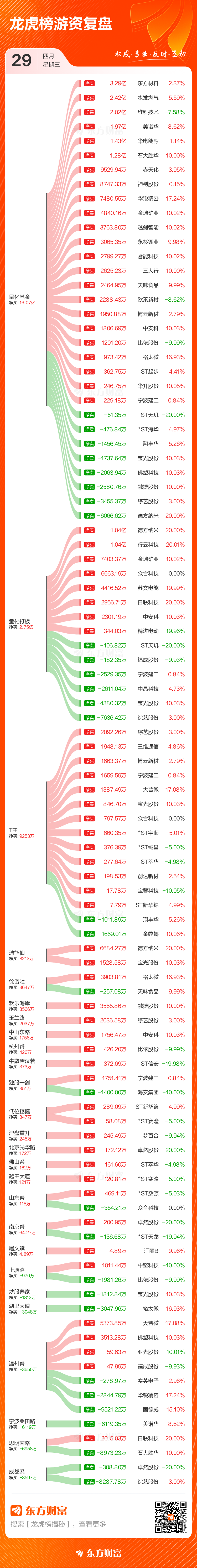 4月29日龙虎榜复盘:江特电机净买额居首