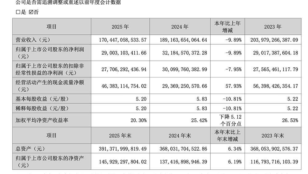 4月29日,格力电器(000651)披露了2025年全年业绩以及2026年第一季度业绩。其中,2025年全年实现营业收入1704.47亿元,同比下降9.89%;归属于上市公司股东的净利润290.03亿元,同比下降9.89%;经营活动产生的现金流量净额463