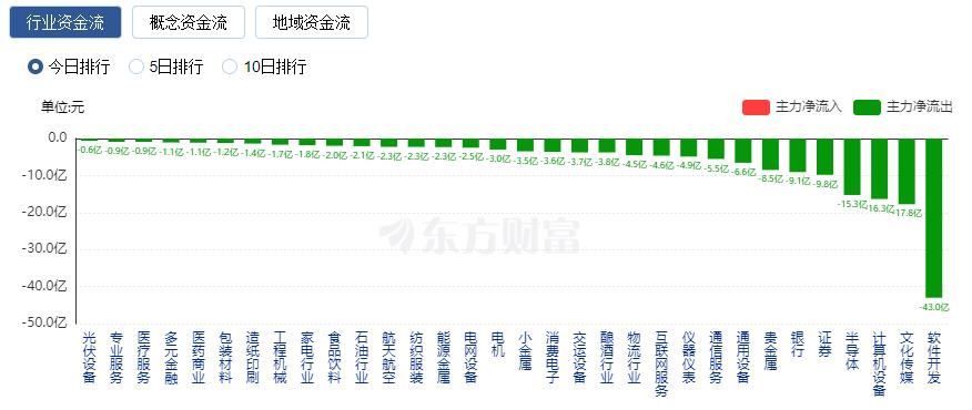 汽车板块表现尤为突出,资金净流入23.04亿,成为净流入最多的板块之一。相比之下,软件开发、文化传媒等板块资金净流出较多。