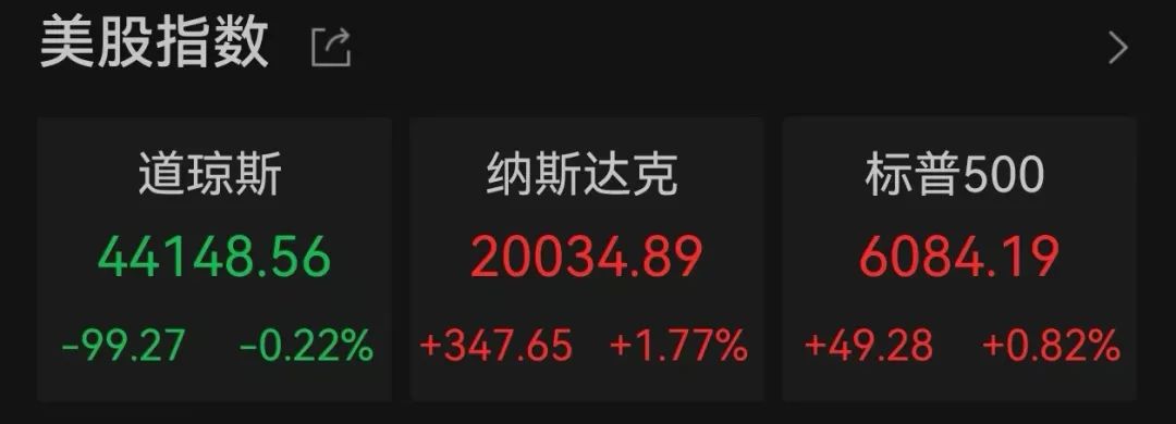 12月11日,美股三大股指高开后走势各异,道指略跌,标普500指数维持上扬;纳指则大幅攀升,成功跨越20000点,创历史新高。截至收盘,道指下滑0.22%,标普500指数上涨0.82%,纳指飙升1.77%。