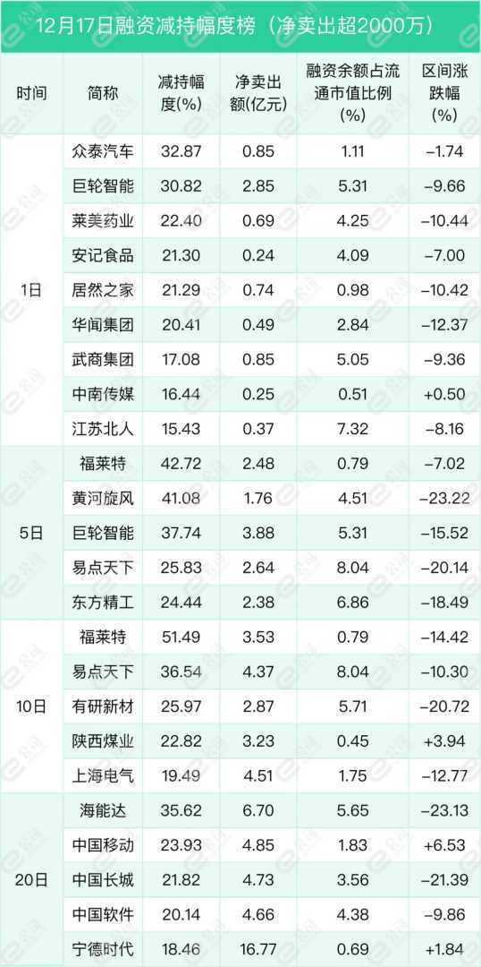 永辉超市、巨轮智能和兆易创新则面临较大的融资净卖出压力,净卖出金额分别为2.92亿元、2.85亿元和2.46亿元,减持幅度分别为14.79%、30.82%和8.11%。