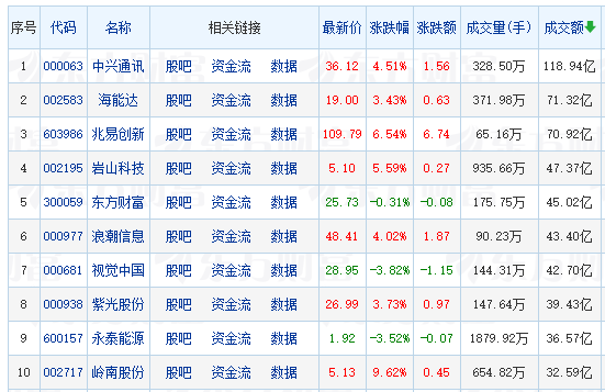 在个股成交金额方面,中兴通讯和海能达表现突出。截至午盘,中兴通讯的成交金额达到118.94亿元,位居榜首;而海能达的成交金额也达到71.32亿元,位列第二。