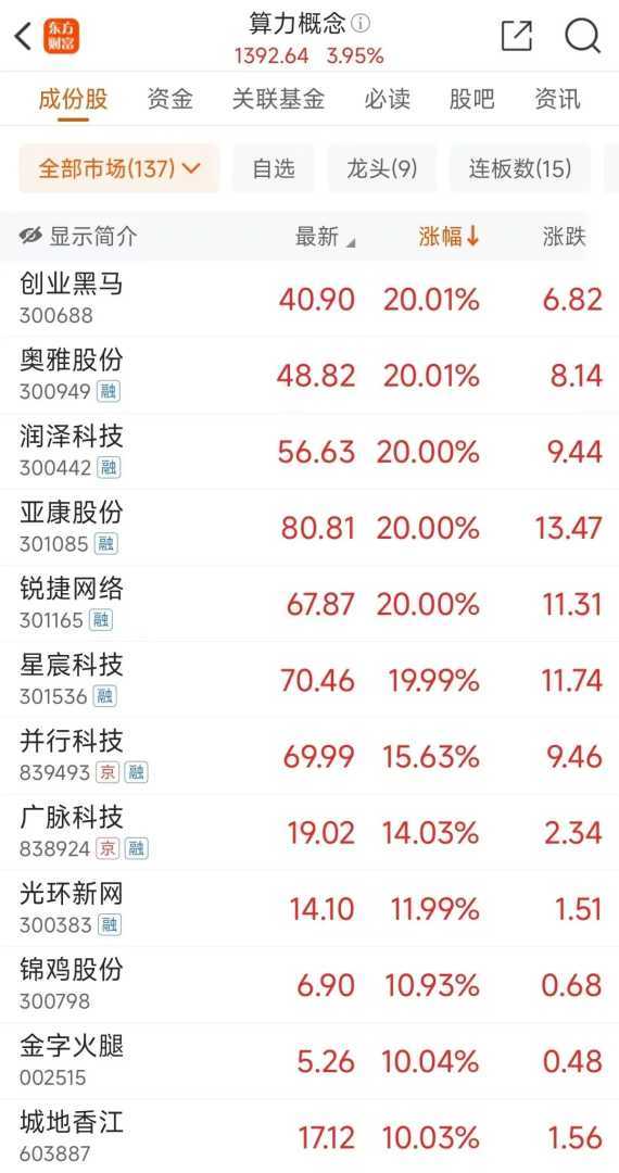 算力概念股掀起涨停潮