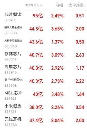 芯片概念的崛起成为近期市场的焦点。科创50指数的强势表现带动了科技芯片股的人气,主力资金净流入显著。中芯国际(688981.SH)等个股的主力资金净流入也位居前列。