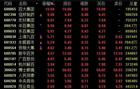 零售概念股在午后集体飙升,百大集团、友好集团、中百集团等多只股票涨停。食品饮料板块也有所表现,香飘飘、来伊份等股票涨停或大涨。此外,微信小店正式开启“送礼物”功能灰度测试,有望在节日期间实现馈赠交易的暴增,休闲食品企业积极布局这一赛道。