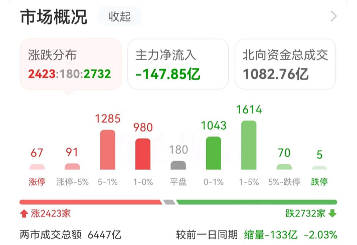 今日(7月2日),A股市场全天呈现震荡分化态势,沪指表现偏强,而创业板指则再度调整。全天两市成交额为6447亿元,相比上个交易日减少了133亿元。截至收盘,沪指微涨0.08%,深成指下跌0.97%,创业板指下跌1.05%。
