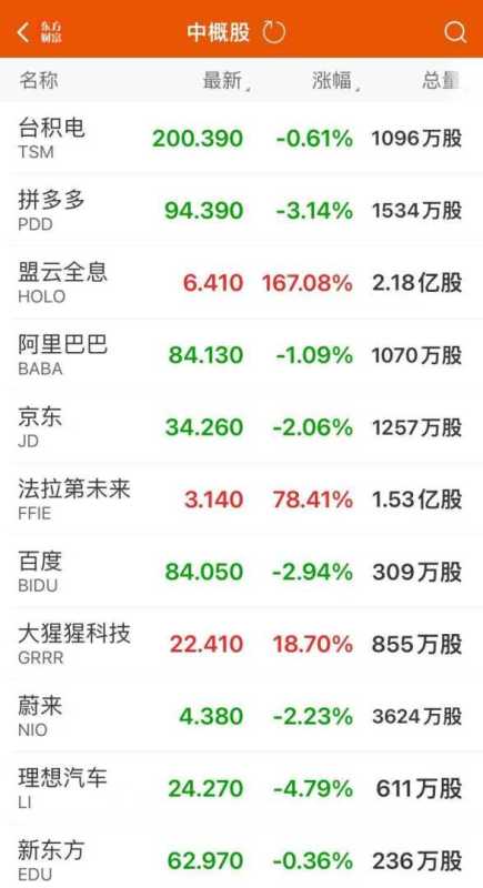 热门中概股中,金山云跌超8%,小鹏汽车跌超6%,拼多多、极氪等亦跌幅明显。法拉第未来股价的暴涨则成为中概股中的一抹亮色。